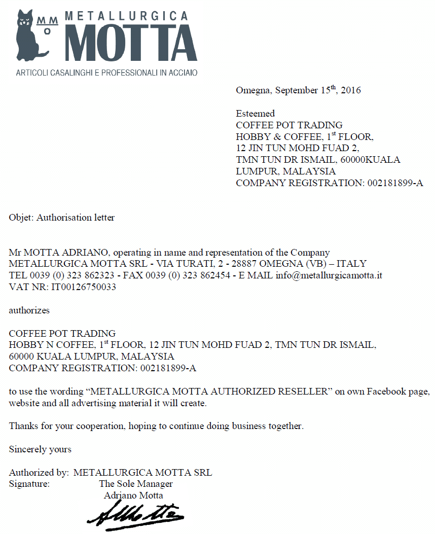 Real Original Guaranteed Metalurgical Motta Italy Barista and Cafe supplier in Malaysia
